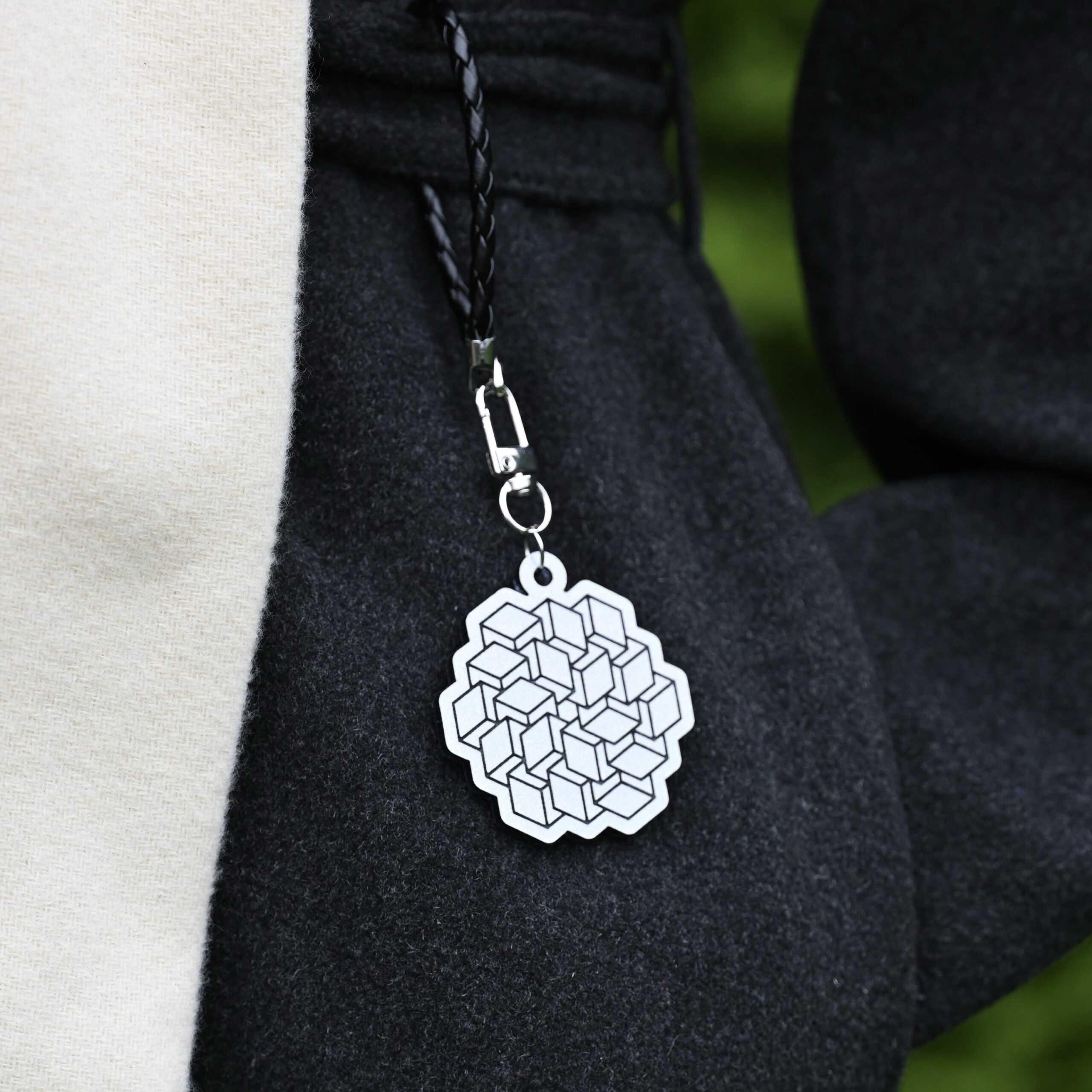 Yöheijastus-riipukset ovat saaneet inspiraationsa luonnosta. Rintaneulat on valmistettu pleksilasista ja päällystetty heijastavalla materiaalilla, joka vastaa EU-normeja. Heijastimen voi kiinnittää käsityönä valmistetulla täysnahkaisella nauhalla, joka on yhdistetty ruostumattomasta teräksestä valmistettuihin yksityiskohtiin.