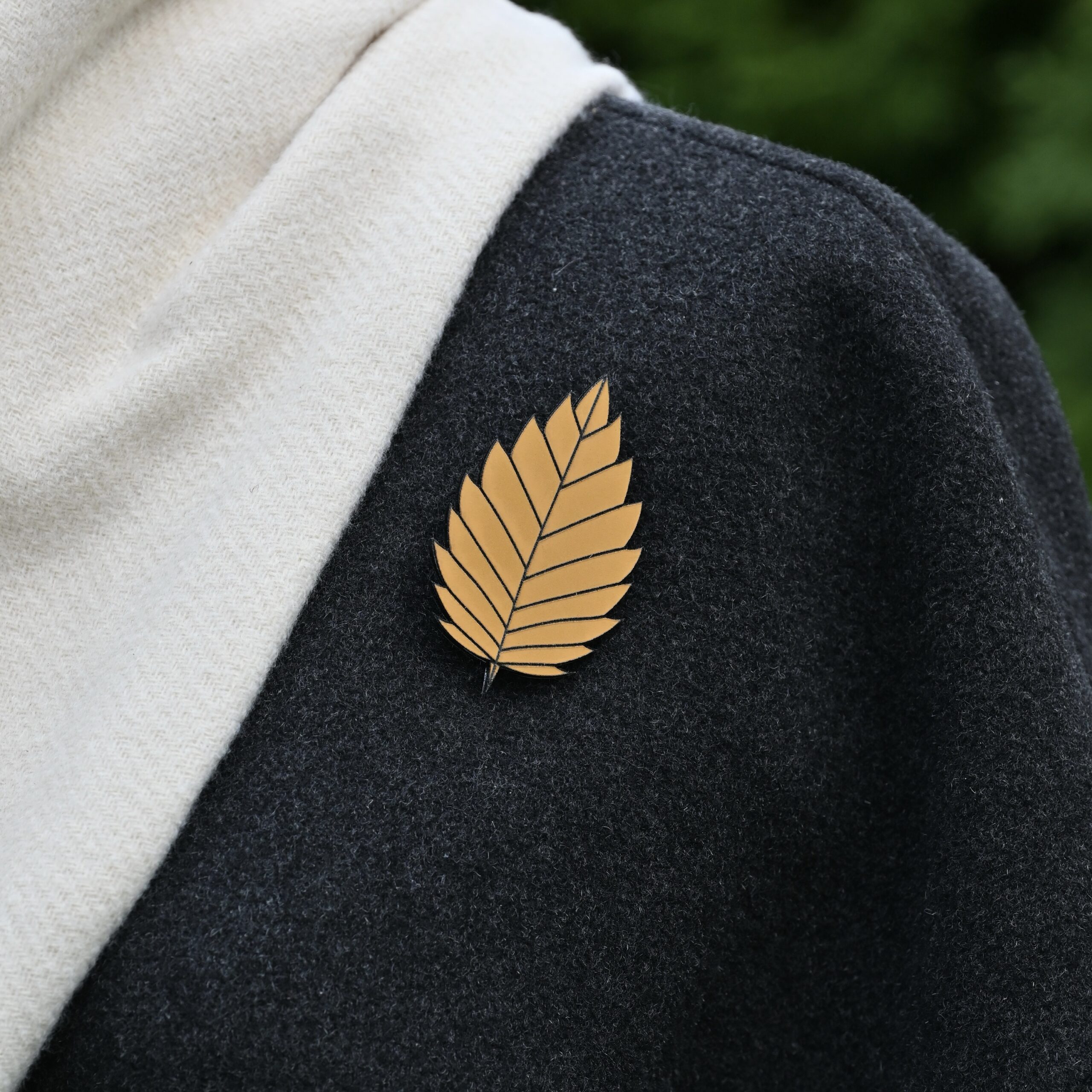 Kultainen hohtava rintakoru ”Koivunlehti”